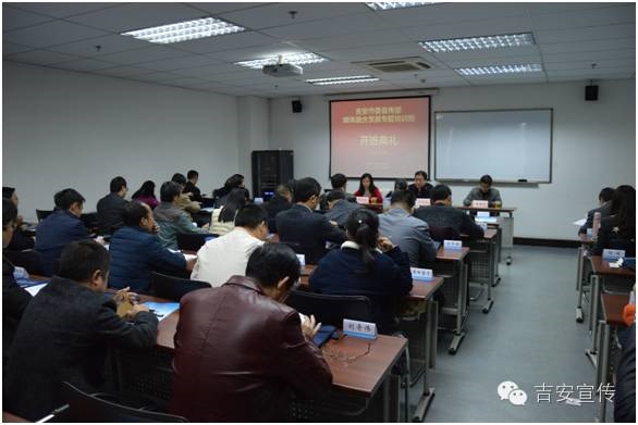11月23日至25日,吉安市融媒体中心建设培训班在复旦大学举行。来自各县(市、区)委宣传部、市直新闻单位融媒体建设的分管领导和具体工作人员共45人参加。市委常委、宣传部长刘兰芳对培训班高度重视,亲自审定课程,并要求培训班确保实效、确保安全、确保纪律、确保形象。25日,刘兰芳到上海复旦大学看望学员并同复旦科技园进修学院院长沈永宝会面交流。市委宣传部副部长陶建华、市委新闻报道中心主任刘洪率队参训并出席开班仪式。