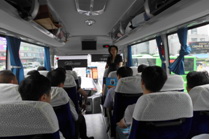 晨光中,学员们已收拾好行装,精神抖擞地坐于车中,向着北仑港出发,并在车上饶有兴趣的聆听宁波港原副总关于宁波港发展情况的介绍。