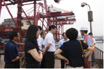港区码头上,宁波港集团港口管理负责人亲临现场介绍工作交流经验。
