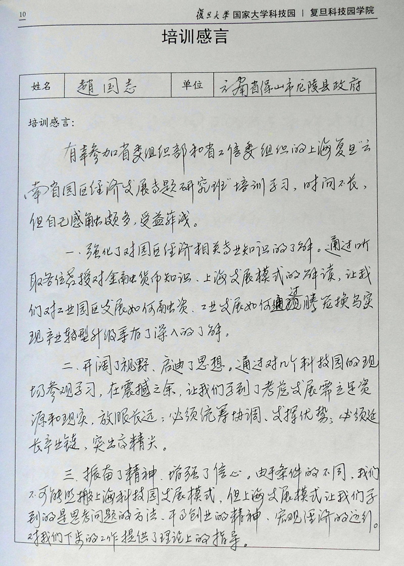 有幸参加省委组织部和省工委组织的上海复旦“云南省园区经济发展专题研究班”培训学习,时间不长,但自己感受颇多,受益匪浅。